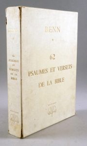 BENN. 62 psaumes et versets de la Bible. Préface de Jules Romain. Paris, éditions Lefort, 1960. Agrémenté de 62 planches et un frontispice-dédicace double. In-folio en feuilles sous chemise illustrée et emboîtage.