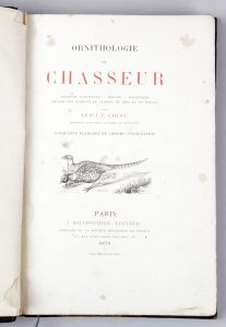 CHENU (Jean-Charles). Ornithologie du chasseur. Histoire naturelle, mœurs, habitudes, chasse des oiseaux de plaine, de bois et de marais. Paris, J. Rothschild, 1870. Grand in-8, demi-chagrin vert à coins, dos à nerfs orné de fers...