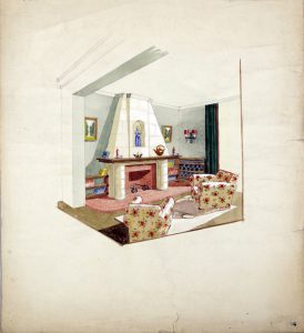 [MOBILIER, DÉCORATION INTÉRIEURE]. 2 projets de meubles et de décoration intérieure d'époque Art Déco et un projet de meuble moderniste.