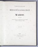 FOUCAULD (Charles de). Reconnaissance au Maroc. 1883-1884. Paris, Challamel et Cie, 1888. 2 volumes in-4 dont un atlas, percaline verte, dos lisses, titre frappé or aux dos, en noir sur les plats supérieurs (reliure de...