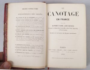 KARR (Alphonse) et GATAYES (Léon). Le canotage en France. Paris, Jules et Alphonse Taride, 1858. Édition originale. In-16 demi-chagrin rouge à coins, dos à nerfs orné.