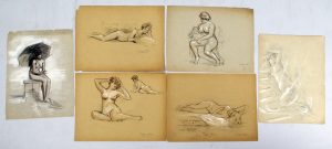 Lucien LOPEZ-SILVA (né en 1862). Suite de 6 nus au fusain avec rehauts de sanguine et de craie blanche. 20 x 26 cm