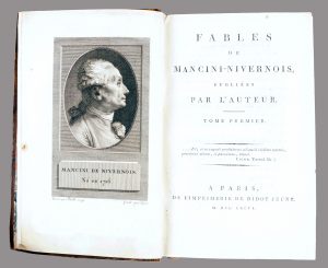 MANCINI-NIVERNAIS. Œuvres. Fables de Mancini-Nivernois publiées par l'auteur. 2 tomes en un volume. Mélanges de littérature en vers et en prose. 3 vol. Paris, Didot jeune, Onfroy et Fuchs, 1796. 4 vol in-8 rel basane, dos liss orné avec...