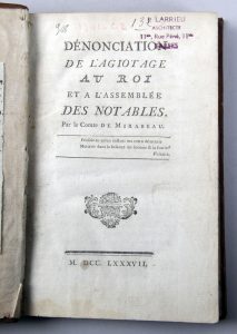 •MIRABEAU (Comte de). Dénonciation de l'agiotage. Au roi et à l'assemblée des notables. Sans lieu ni nom, 1787.