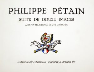 [ÉTAT FRANÇAIS]. Philippe PÉTAIN. Suite de douze images avec un frontispice et une offrande. Imagerie du maréchal. Imprimé à Limoges, 1841. Petit in-folio.