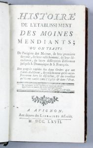 [POULLIN de LUMINA (Étienne-Joseph)]. Histoire de l'établissement des moines mendiants ; où on traite de l'origine des moines, de leur première ferveur, de leur relachement, de leur décadence, de leurs différentes réformes, jusqu'à S....