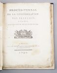 [RÉVOLUTION FRANÇAISE]. PROCÈS-VERBAL de la confédération des François, à Paris, le quatorze juillet mil sept-cent-quatre-vingt dix. Paris, Lottin, 1790. 96 pp précédé d'un Avis à MM. Les fédérés et d'un envoi sur papier tricolore à...