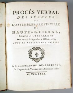 [ANCIEN RÉGIME]. PROCÈS-VERBAUX des séances de l'assemblée provinciale de Haute-Guienne. •Volume 1. Septembre & Octobre 1779. Villefranche de Rouergue, Vedeilhié, 1780 ▬suivi de : Procès verbal des séances de l'assemblée de...