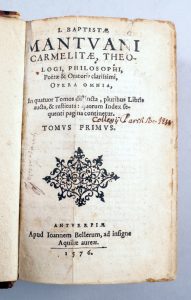 Battista SPAGNOLI / Jean BELLERE. Baptistae Mantuani carmelitae theologi, philosophi, poetae & oratoris clarissimi, opera omnia : in quatuor Tomos distincta, pluribus Libris aucta, & restituta .. Antverpiae : Bellerus, 1576. 2 vol. in-8 ; veau...