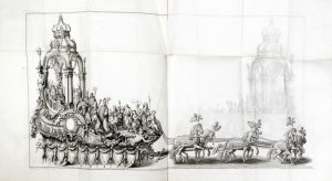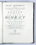 TRAIN TRIOMPHAL ORNÉ DE CAVALCADES, chars de triomphe, symboles et autres ornemens, à l'occasion du Jubilé de mille ans de Saint Rombaut, martyr, évêque, apôtre et patron de la ville et province de Malines. Malines, Jean-François Van der...