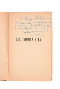 Cinq envois autographes signés d'Aragon sur les faux titres, adressés à Roger Désormière: «À Roger Désormière amicalement Aragon».