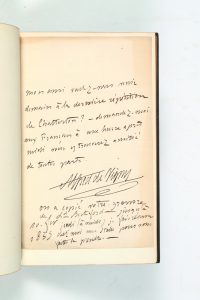 Exemplaire enrichi d'une lettre autographe signée (1 page) d'Alfred de Vigny, datée du 10 février 1835 dans laquelle il invite un ami à assister à la dernière répétition de Chatterton, qui doit avoir lieu le lendemain: "[...] demandez-moi aux Français à une heure après midi vous y trouverez amitié de toutes parts."
