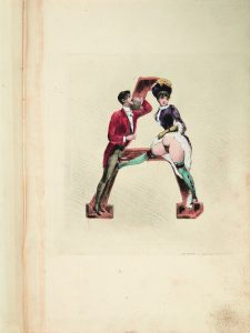 Fameux abécédaire érotique composé de 26 eaux-fortes originales coloriées à l'aquarelle avec rehauts de gouache, sur papier vergé fort et montées sur onglets.