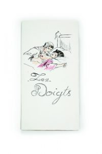 BOUSSINOT (Roger). Les Doigts. Sans lieu, Tchou, La Fontaine des Quatre Saisons, 1976. In-8 étroit, broché, deux couvertures illustrées rempliées. Exemplaire unique enrichi de 16 dessins originaux érotiques, signés G.T.