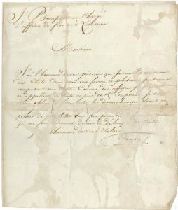 RETOUR EN EUROPE DU PLUS JEUNE FRÈRE DE NAPOLÉON [accompagnée d'Elizabeth Patterson, enceinte ; leur mariage avait été déclaré nul par décret impérial du 2 mars 1805]. " J'ai l'honneur de vous prévenir que je viens d'arriver des Etats Unis avec ma femme et plusieurs personnes composant ma suite. Comme des affaires pressantes m'appellent de suite auprès de l'Empereur, je vous serois obligé de faire toutes les démarches qui seront en votre pouvoir pour m'éviter la quarantaine. M. Balkely porteur de cette lettre vous fera part des différentes raisons qui me font vivement desirer de débarquer de suite "...