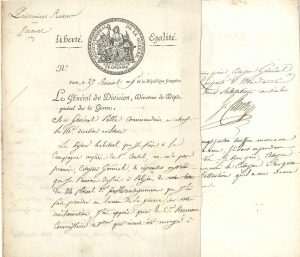 •une L.S. de Guillaume Charles FAIPOULT, préfet de l'Escaut, Gand 23 frimaire IX (14 décembre 1800), sur l'arrivée à Lille du baron de Sprengporten, accompagné du Prince Dolgorouky et de quelques officiers russes, et du Général Clarke avec deux aides de camp.