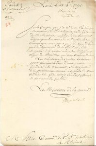 •une circulaire impr. de Louis XVI (signée par le secrétaire, avec griffe de Duportail), 14 octobre 1791, relative au devoir d'obéissance.