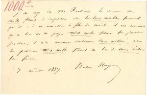 Victor HUGO (1802-1885). P.A.S., 7 août 1837 ; 1 page oblong in-8.