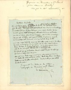 Rien n'est fait en vain. Les ondulations des feuilles [...] comme celles des ormes, des chataigniers, des tilleuls, leurs angles rentrants et saillants comme dans les érables [...] me semblent faits pour les faire distinguer a une grande hauteur les unes des autres par des découpures alternatives de lumière et d'ombres. Plus elles sont élevées plus elles sont découpées. [...] Quand aux usages des feuilles nous avons dit ailleurs quelles seroient à conduire les eaux à leurs racines dans les végétaux des lieux élevés étant taillés en forme de chopes, de langues, de pinceau, ou en les en préservant comme celles des lierres marécageux qui sont imbriquées comme des thuiles telles que celles du maronier d'Inde. Leurs différents groupes et directions, donnent a l'arbre entier un port, des reflets particuliers à son genre ". Avec authentification et ex-dono à M. Boilly par Louis Aimé-Martin.
