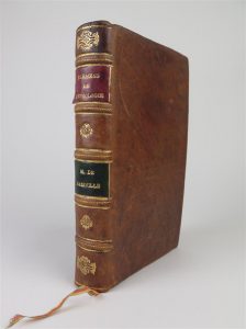 dorées dans une pièce de cuir rouge, auteur dans une pièce de cuir verte. Caissons ornés de fleurons dorés. Quelques pages ont des rousseurs