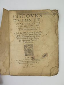 DISCOURS DU BON ET LOIAL SUBJET DE LA GRANDE BRETAGNE DE LA REYNE DE CE PAYS TOUCHANT LA PAIX ET LES AFFAIRE D'ICELUY, A la gloire de Charles Ier, roi du royaume séant en son parlement, distingués en tous ces ordres selon la volonté des roys et...