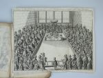 Contient trois grandes gravures dépliantes avec explications des planches suivies de deux portraits gravés, un d'Henriette Marie Reyne d' Angleterre et de Charles Prince de Galles et de 39 pages de textes. La dernière page est ornée d'un écusson et d'un monogramme surmonté d'un texte " Light in darkness " et au-dessous " Lumière dans les ténèbres ". Très bel état des planches représentant pour la première (35x25cm) " L'ordre manière et séance de sa majesté britannique avec les seigneurs spirutuelz et temporelz dans le haut parlement ", la seconde (33x26 cm) " La manière et ordre de la séance de la maison basse ou des comunes qui consistent en chevalier gentils homes et bourgeois ", la troisième (37x26 cm) " L'ordre et manière de la séance des archevêques et évêques doyens archidoyens docteurs et Ministres dans la maison de l'assemblée ". La couverture d'attente est manquante sur les deux tiers du premier plat, la page de titre est salie et les pages sont cornées et pliées, intérieur frais.