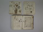 Quelques mouillures et tâches sur certaines pages, reliure en assez mauvais état avec manque de cuir, angles frottés et mors fendus sur plus de la moitié.