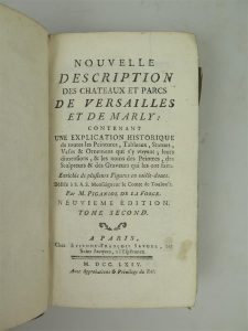 PIGANIOL DE LA FORCE, Nouvelle description des châteaux et parcs de Versailles et de Marly, Éditions Etienne François Savoye, Paris, 1764, in-12, tome 3 seul, 380 pages. Ouvrage orné de 8 belles figures en taille douce.