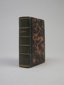 Reliure demi cuir verte, plats papier marbré, dos lisse orné de filets dorés, titre en lettres dorées.