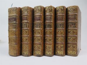 Reliure plein veau granité, dos à 5 nerfs, caissons ornés de fleurons dorés, titre en lettres dorées dans une pièce de cuir rouge, trois tranches rouges, bon état.