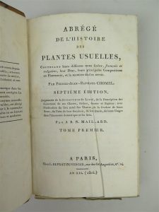 CHOMEL JEAN BAPTISTE, Abrégé de l'histoire des plantes usuelles, Éditions Duprat Duverger, Paris, 1804, in-12, 504 pages dans le tome 1, 518 pages dans le tome 2