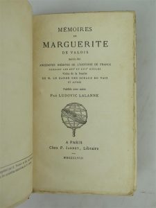 LALANNE LUDOVIC, Mémoires de Marguerite de Valois suivis des anecdotes inédites de l'histoire de France pendant les XVI et XVII ème siècle, Éditions Janet, Paris, 1858, in-12, 352 pages.