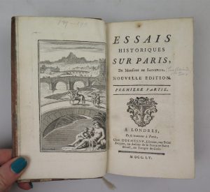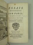 SAINTFOIX GERMAIN FRANCOIS POULLAIN DE, Essais historiques sur Paris, Éditions Duchesne, Paris, 1755, in-12, 182 pages dans le volume 1, 104 pages dans le volume 2, 282 pages dans le volume 3 Complet en trois volumes. Le premier tome contient...