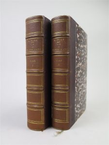 Demi reliure cuir marron, dos à 5 nerfs, filets dorés dans les caissons, titre et tomaison en lettres dorées, plat papier marbré, dos légèrement décolorés.