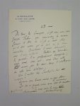 •une très belle lettre d'Anatole France à l'en tête de la Béchellerie st Cyr sur Loire, dans cette lettre Anatole France rend un hommage à Joseph Fabre