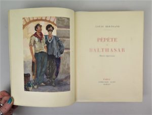 BERTRAND LOUIS, Pépète et Balthasar, Moeurs algériennes, Éditions Plon, Paris, 1925, petit in-4, 363 pages. Tirage à 1000 exemplaires, un des 20 premiers sur Japon impérial numéroté 7. Aquarelles et dessins d'Émile Aubry.