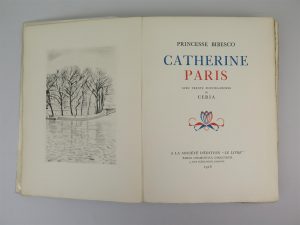 BIBESCO Princesse, Catherine Paris, Éditions le livre, Paris, 1928, in-4, 289 pages. Ouvrage illustré de 30 pointes sèches de Ceria sous serpentes.