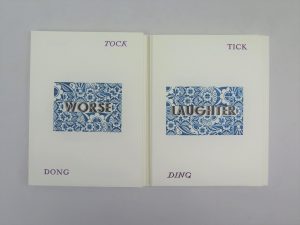 Imprimé en bleu, noir et violet avec des caractères de types hélios et naudin sur un papier Hahnemüle.
