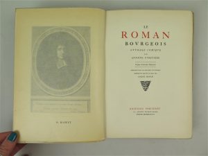 FURETIERE ANTOINE, Le roman bourgeois, Éditions Porteret, Paris, 1927, in-8, 289 pages. Exemplaire n°431/800, un des 725 sur pur fil lafuma.