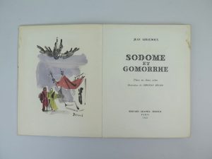 GIRAUDOUX JEAN, Sodome et Gomorrhe, Éditions Grasset, Paris, 1943, in-4, 139 pages. Exemplaire n°941/2390, un des 2300 sur vélin supérieur. Ouvrage illustrée par Christian Bérard dont un frontispice en couleur.