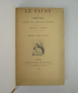 GOETHE, Faust, Éditions Michel Lévy, Paris, 1868, in-4, 377 pages. Traduction de Gérard de Nerval. Contient un frontispice représentant Goethe.