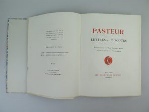 PASTEUR, Lettres et discours, Éditions les bibliophiles comtois, Besançon, 1926, in-4, 354 pages. Exemplaire n°127/135, un des exemplaires réservés aux collaborateurs.