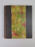 Reliure cuir, papier marbré au centre du premier plat, dos à 4 nerfs, plats intérieurs en suédine rouge.