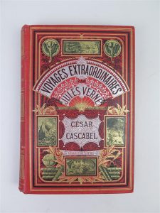 VERNE JULES, Cesar Cascabel, Éditions Hetzel, Paris, in-4, 438 pages. Ouvrage orné de 85 dessins, de 12 gravures, et 2 cartes de Georges Roux en chromolithographie.