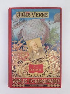 VERNE JULES, P'tit bonhomme, Éditions Hetzel, Paris, in-4, 458 pages + catalogue. Ouvrage orné de 85 dessins, 12 grandes gravures, et 1 carte en couleur par L. Benett.