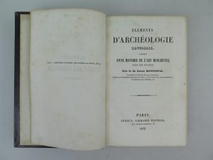 BATISSIER LOUIS, Eléments d'archéologie nationale, Éditions Leleux, Paris, 1843, in-12, 612 pages. Ouvrage contenant de nombreuses vignettes noires in texte.