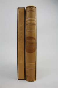 Le fac similé est un plein cuir estampé, les commentaires demi reliure cuir, plats en tissu