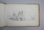 ALBUM ARMORICUM, in-12 oblong Ouvrage orné de dessins originaux. Contient 8 dessins en lavis, 7 dessins au crayon, une gravure, un dessin à la plume, une photo et un petit plan en couleurs à la plume.