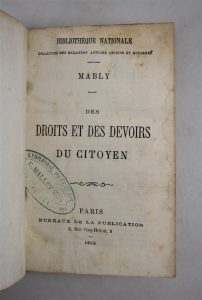 MABLY, Des droits et des devoirs du citoyen, Paris, 1865, in-16.