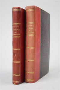 Demi reliure en cuir rouge, plats papier marbré, titre, auteur et tomaison en lettres dorées, bon état.